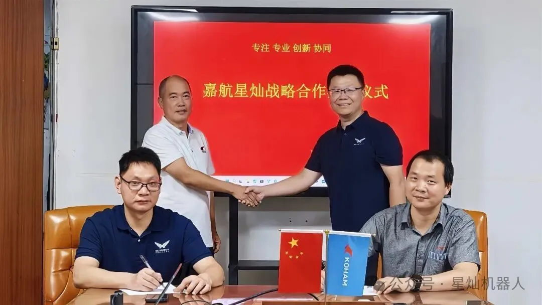 2025年10月18日在嘉航东莞总部,嘉航实业董事长马先鹏与星灿智能CEO李战斌等双方负责人见证下,嘉航实业与星灿智能正式签署战略合作协议。此举旨在实现优势互补:嘉航实业的制造与市场经验,结合星灿智能的自动驾驶技术积累,将共同推动割草机器人产品的性能提升与创新突破。